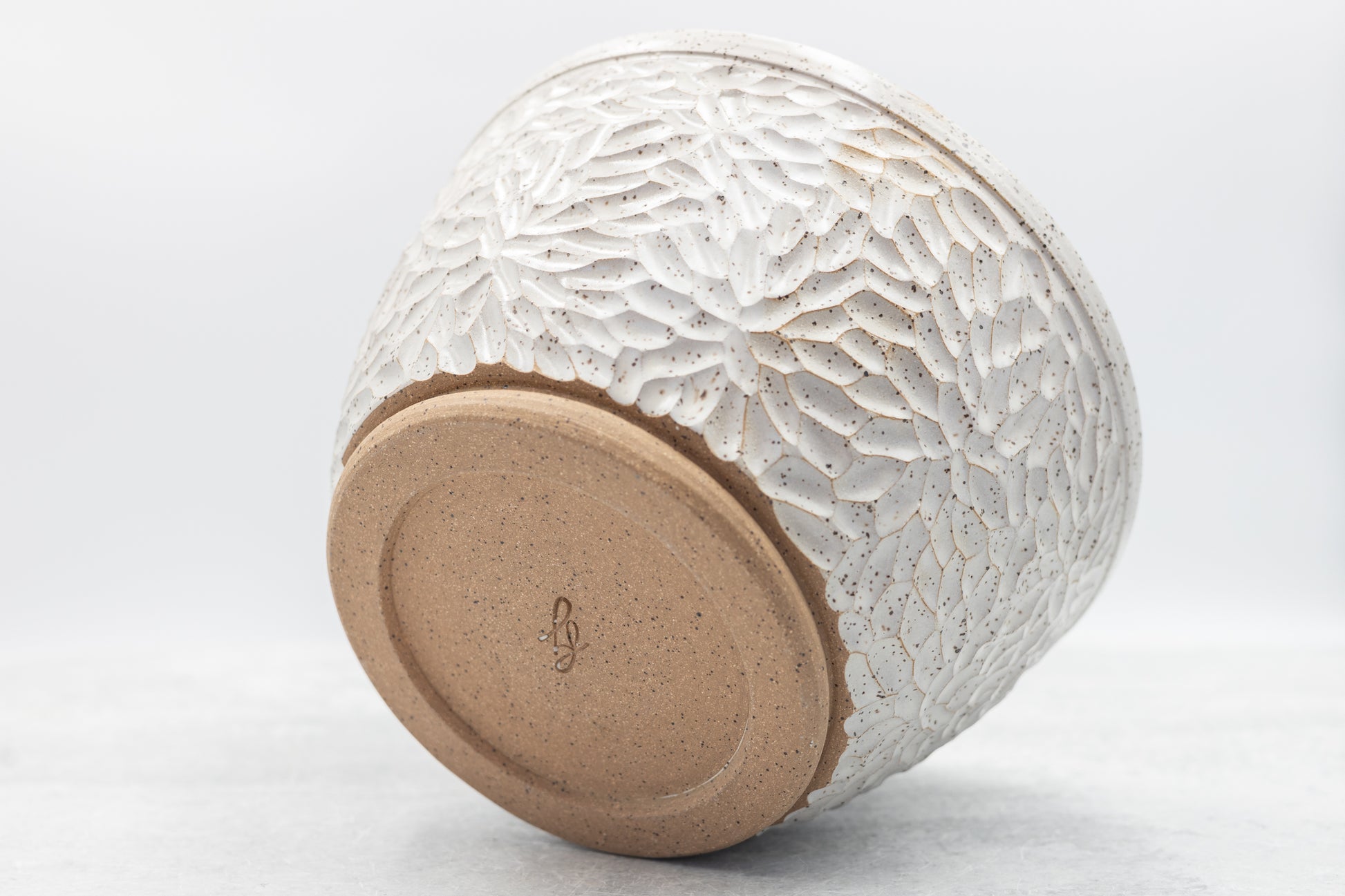 Wheel thrown bowl with a warm brown speckled stoneware clay. Hand carved throughout the entire outside. Perfect as a centerpiece on a table or island counter, or to use as a fruit or mixing bowl.